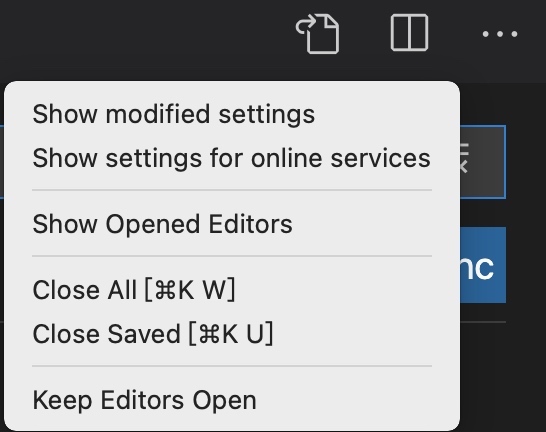 设置右上角的三个点,查看已经被修改的全局设置(或者搜索时输入@modified,相当于条件筛选);可以分别看到被修改的全局/用户设置和工作区设置